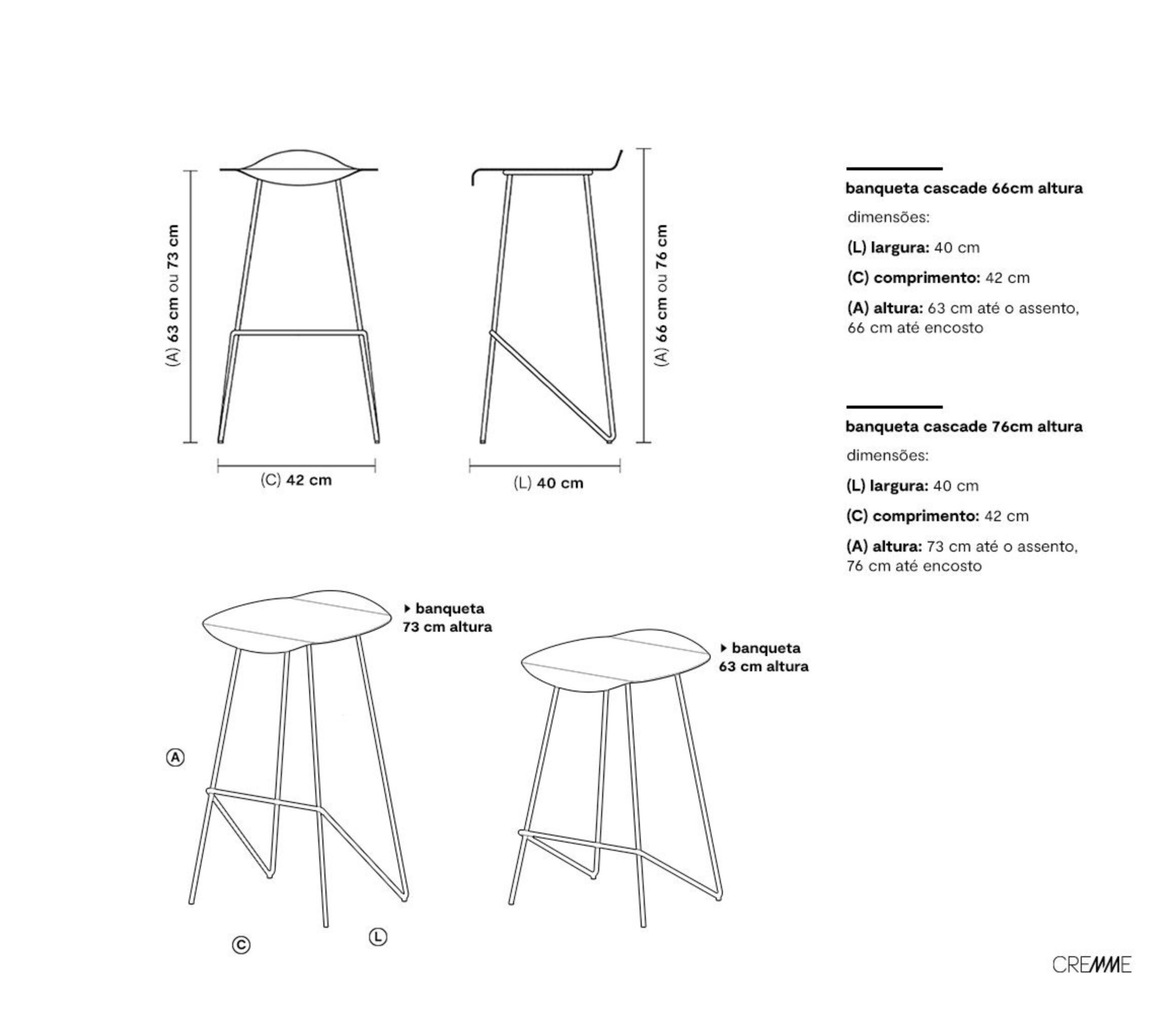 Características acentuadas pela estrutura elegante que ergue assentos em aço ou estofados.