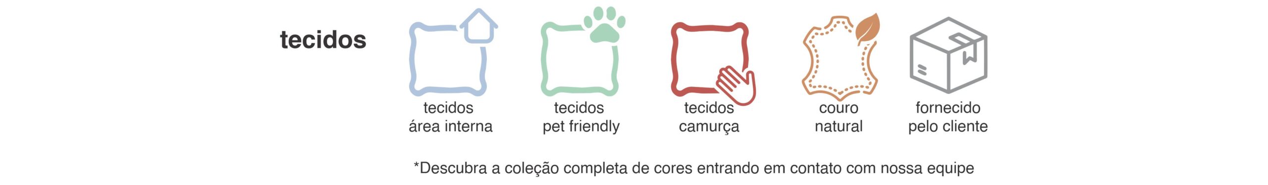Estofado em lona, tecido ou couro natural, em diversas opções de cores.